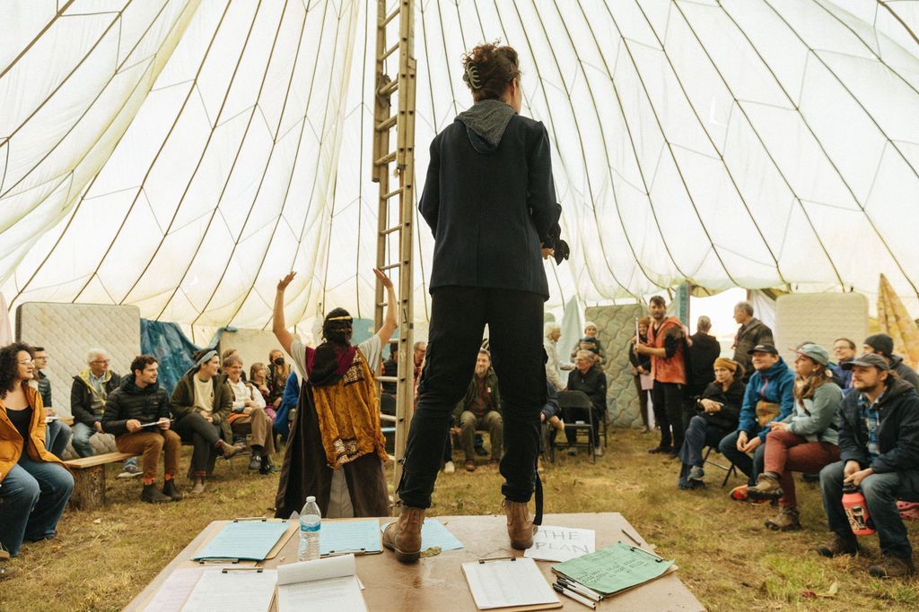 Each year the show is built around a central theme, such as grappling with the unknown or the trials and tribulations of intentional living. The production engages the audience in these themes as they are moved across the land, encountering surprise after surprise and often necessitating participation and reflection of some kind. The Shadow Cabaret draws out our shadows, personal and collective, and the show follows the timing of the sun which sets at a crucial moment in the performance.